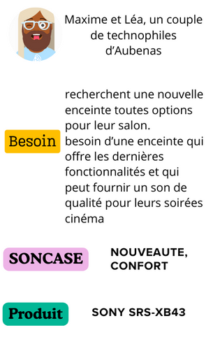 - Nouveauté : La Sony SRS-XB43 est une enceinte toutes options qui offre les dernières fonctionnalités, comme la possibilité de jumeler plusieurs enceintes, une fonction mains libres et une fonction powerbank. Cela permet à Maxime et Léa de profiter des dernières innovations en matière de technologie audio